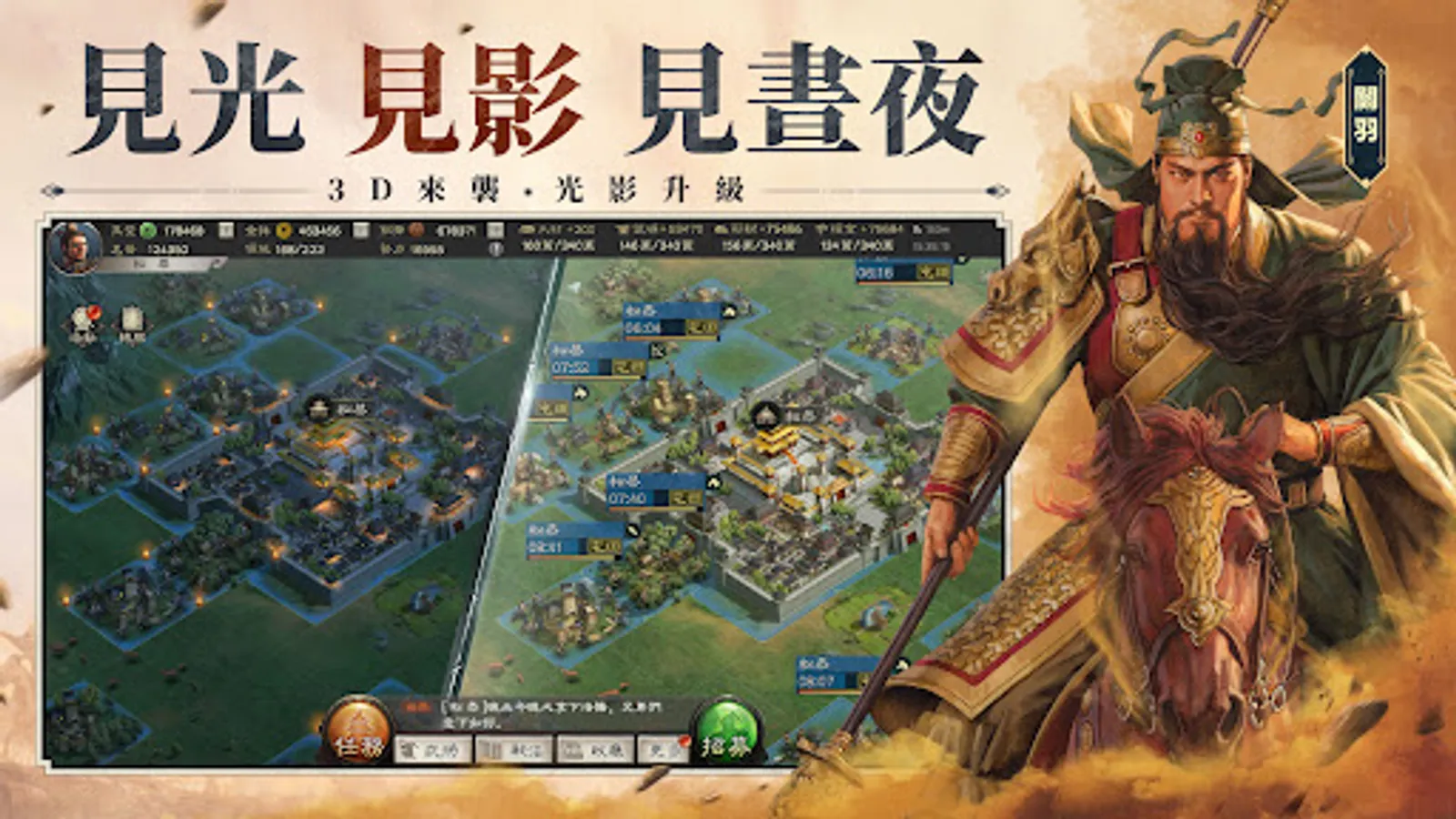 You will start from scratch and build your own main city step by step. By attacking different types and levels of resource land, hoarding resources and strategically allocating and using them, you can gradually build and upgrade your main city, unlock more gameplay and powerful buildings, and make your development faster. The game is also based on historical facts. In the real big map of one million grids, more than a hundred cities, state capitals and checkpoints in the history of the Three Kingdoms are set up for your strategy. Let you really start from the beginning of a city, continue to accumulate resources, explore and expand territories, and create your own hegemony!