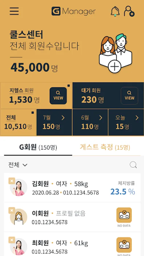 -You can search G-health members, non-members (for those who do not have G-health), and members' guest lists.