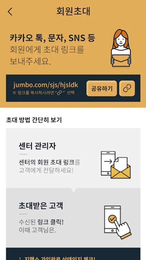 -Links are provided for each affiliation (center), so you can send invitations to multiple members after copying the link.