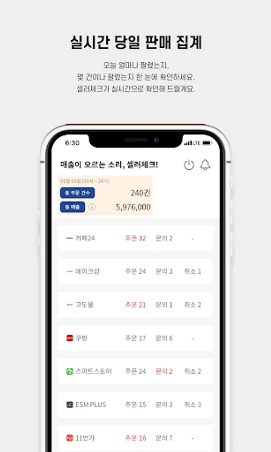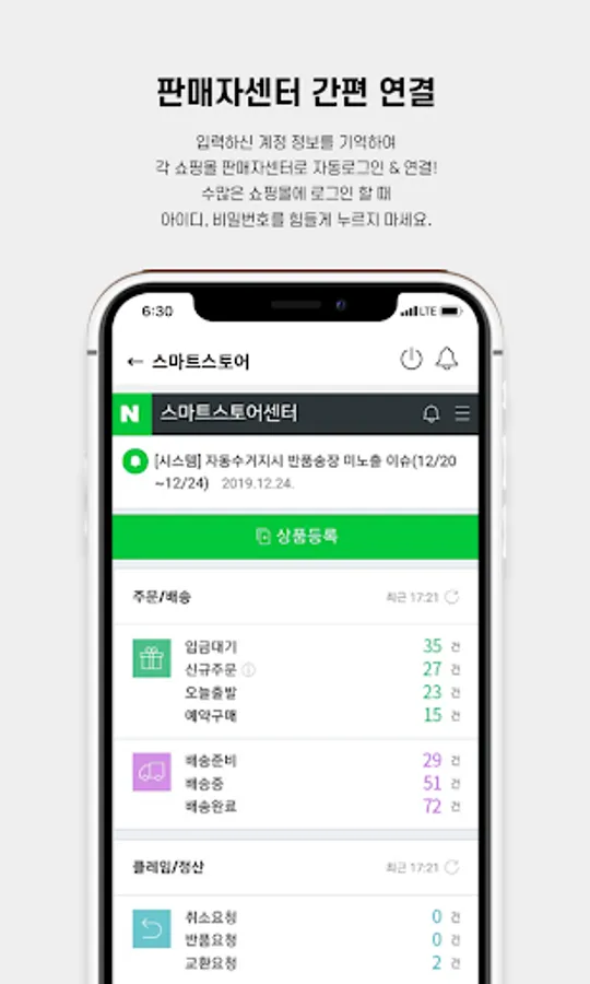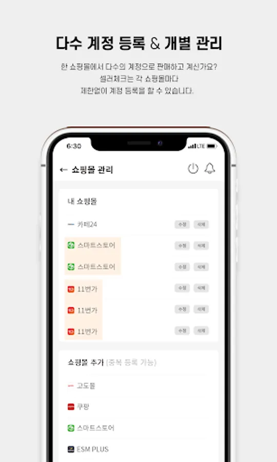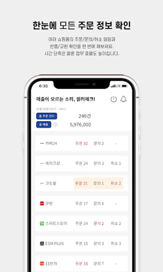 · Check order/inquiry/cancellation notifications and returns/exchanges from multiple online shopping malls at once.