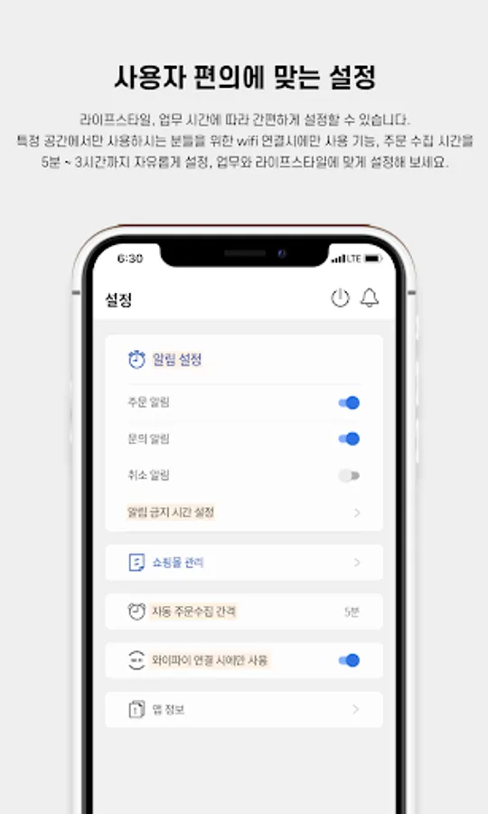 · Function to use only when connected to wifi for those who use only in a specific space, and freely set the order collection time from 5 minutes to 3 hours.
