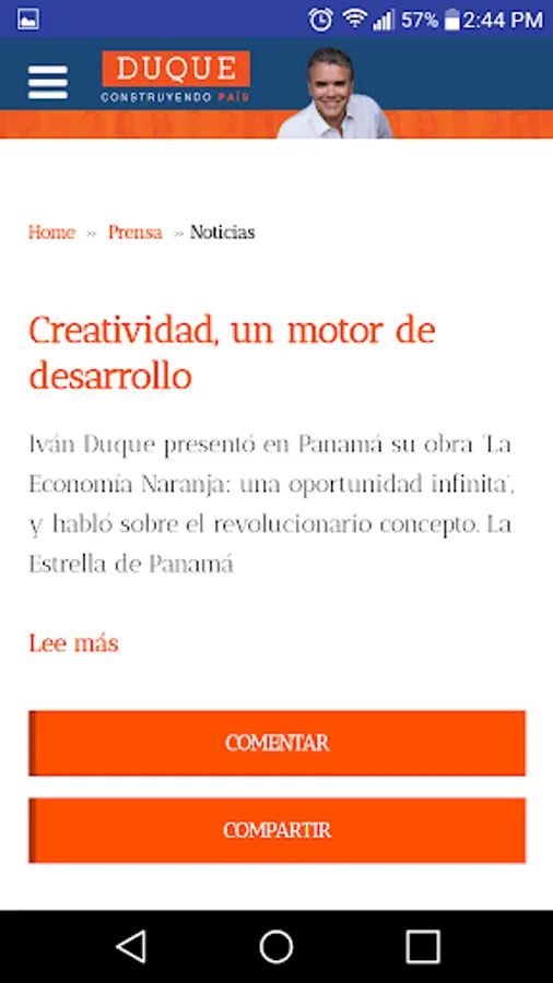 Through this application you can enter online digital content Senator Iván Duque more easily and quickly.