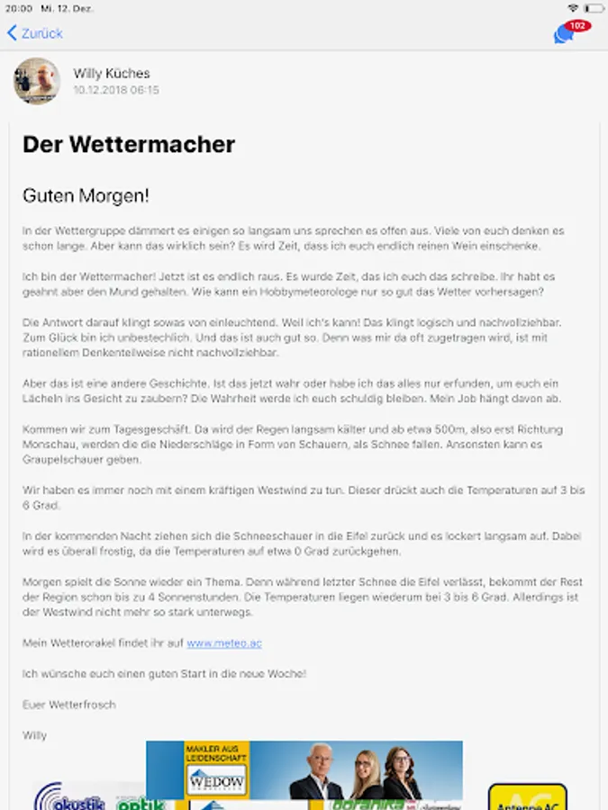 The regionally better weather forecast from the weather frog from Aachen-Brand for the city region of Aachen.