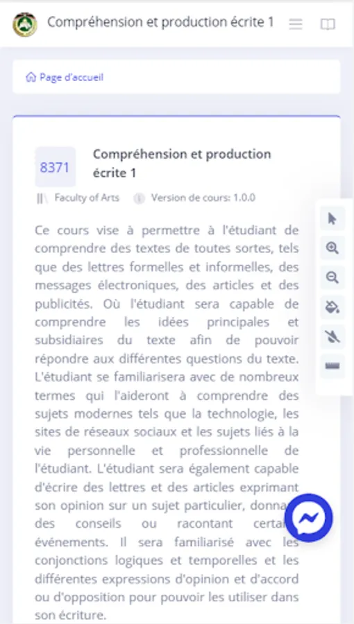 This course aims to enable the student to understand texts of all kinds, such as formal and informal letters, electronic messages, articles and advertisements. Where the student will be able to understand the main and subsidiary ideas of the text in order to be able to answer the different questions of the text. The student will become familiar with many terms that will help them understand modern topics such as technology, social media sites, and topics related to the student's personal and professional life. The student will also be able to write letters and articles expressing his opinion on a particular subject, giving advice or recounting certain events. He will be familiar with the logical and temporal conjunctions and the different expressions of opinion and agreement or opposition in order to be able to use them in his writing.