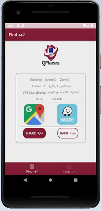 Qplaces is an application to find the GPS coordinates (location) of address in Qatar based on the new Qatar Area Referencing System (QARS).