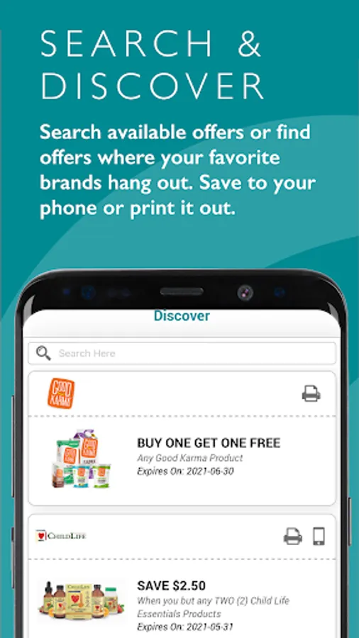 - Print traditional coupons directly from your phone and redeem them anywhere that product is sold
