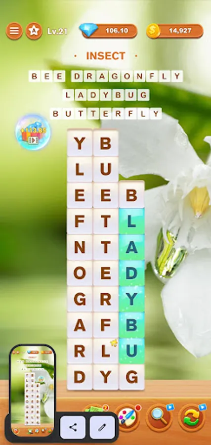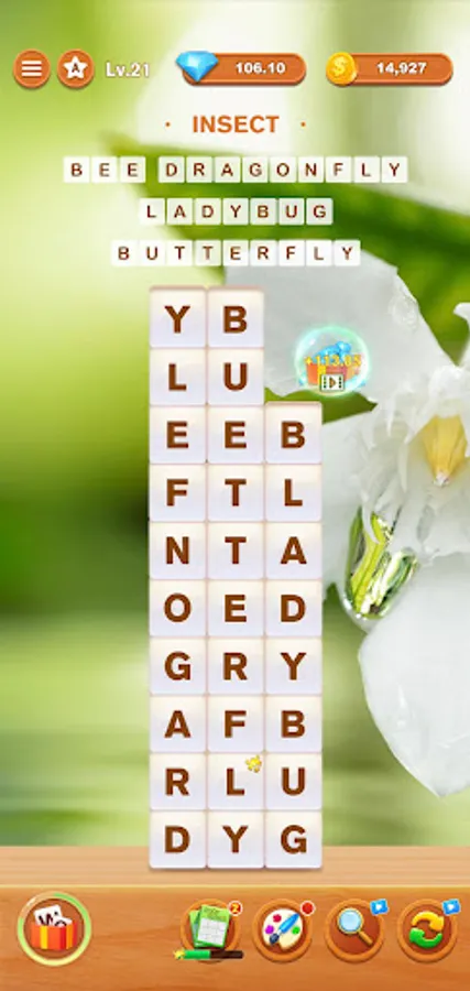 Word Garden is a refreshing garden landscape style word game. You won't get eye strain while playing the game, and you can practice your vocabulary by connecting letters in your own way to form words.