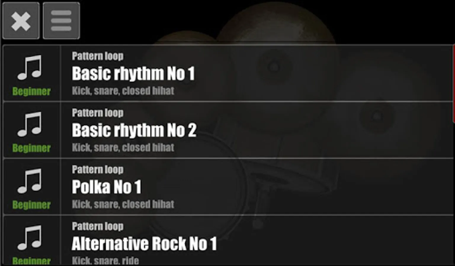 - More then 13+ different drums and cymbals.