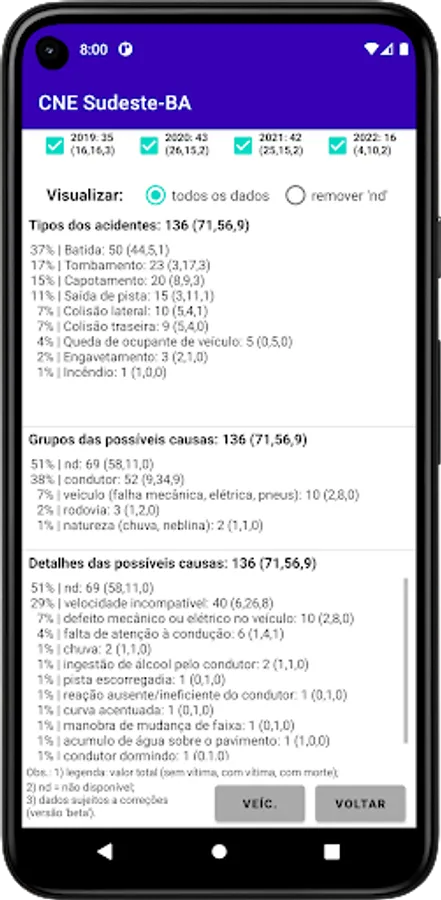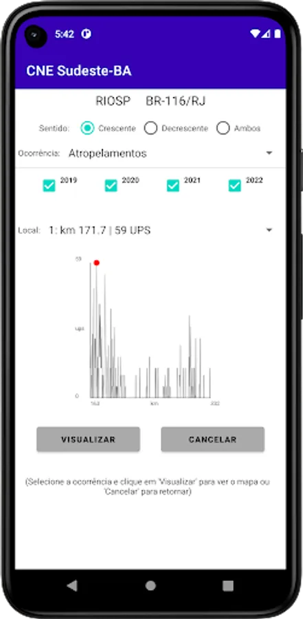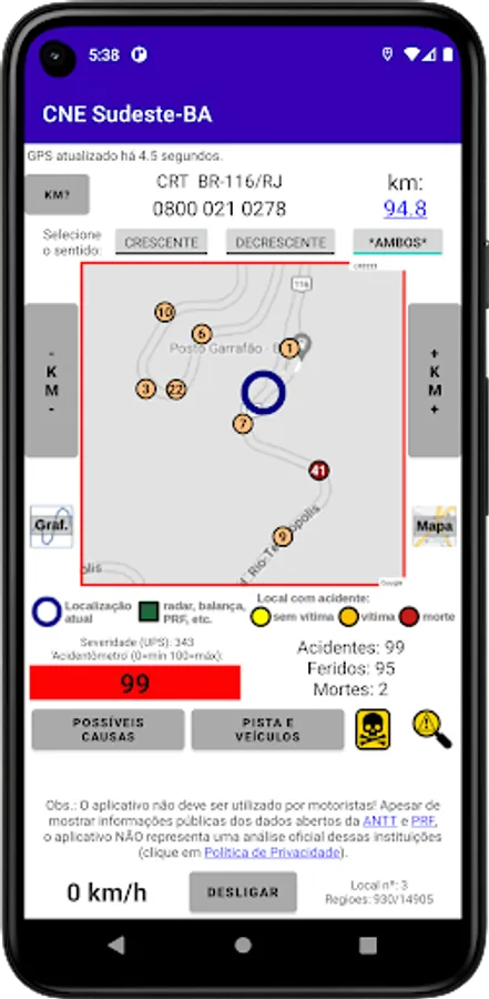 In this 'beta' version, Caution on the Road - Southeast (CNE Sudeste) contains information on the following highways: