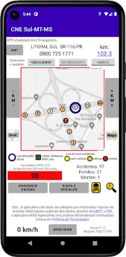 The application is INFORMATIVE ONLY and MUST NOT BE USED BY DRIVERS! Therefore, by using the application, the user agrees NOT to hold the application responsible in case of accidents.