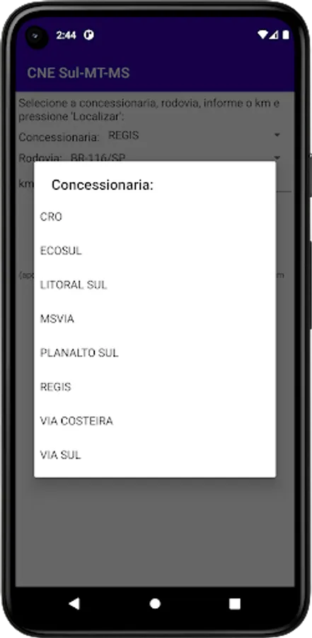 In this 'beta' version, Caution on the Road - South (CNE Sul) contains information on the following highways: