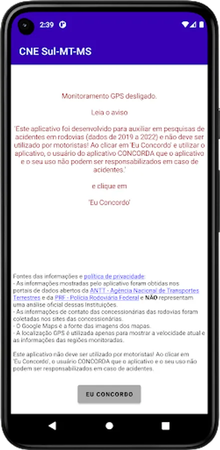 - The information shown by the application was obtained from the open data portals of ANTT - National Land Transport Agency (https://dados.antt.gov.br/group/rodovias) and PRF - Federal Highway Police (https:// www.gov.br/prf/pt-br/acesso-a-informacao/dados-abertos) and DO NOT represent an official analysis of these Institutions.