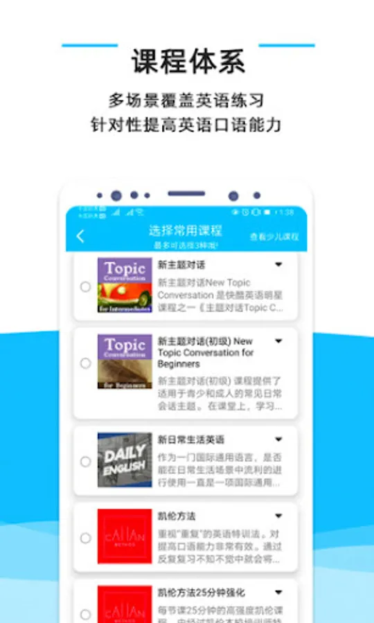 [Course introduction] Kuaiku English adult courses are designed for adult users independently. The courses are tailored to meet the needs of human users’ life and work scenes. The courses mainly include Basic English, Daily English, Theme Dialogues, News English, Workplace Business English, Travel English, Karen Method, etc. The complete learning system meets various English learning needs.
