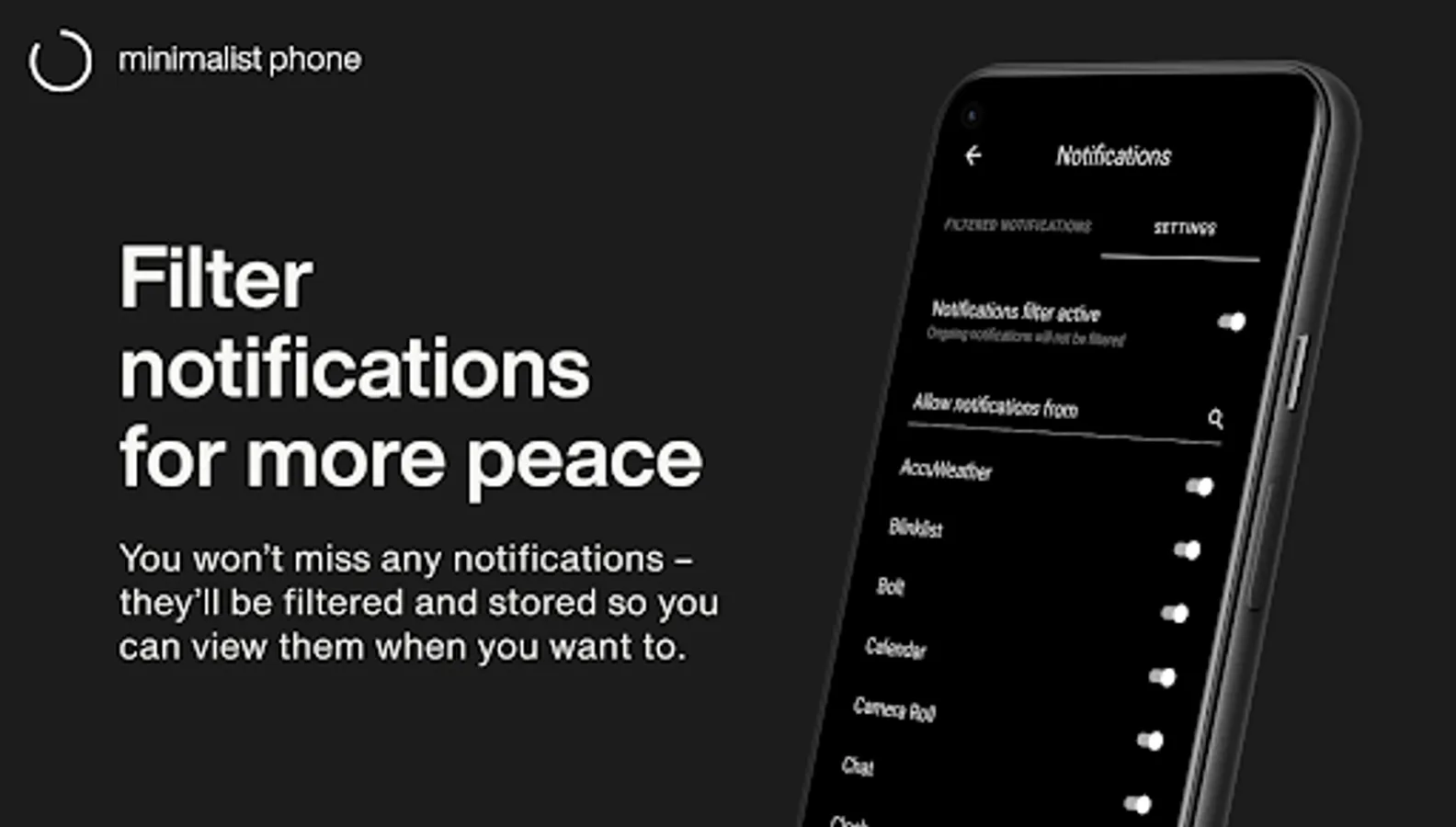 Turn your phone into a minimalist phone. Reduce your screen time and mobile phone usage to stay focused. Boost productive habits and concentration - block any app and filter notifications.