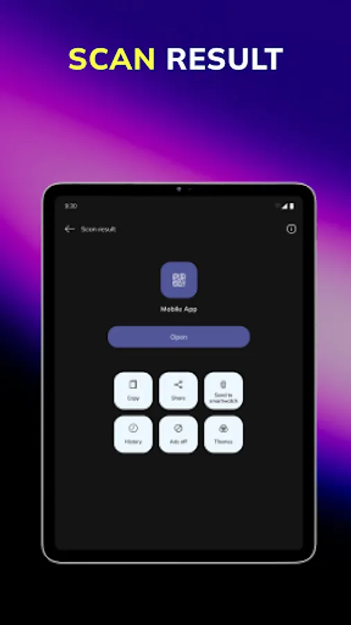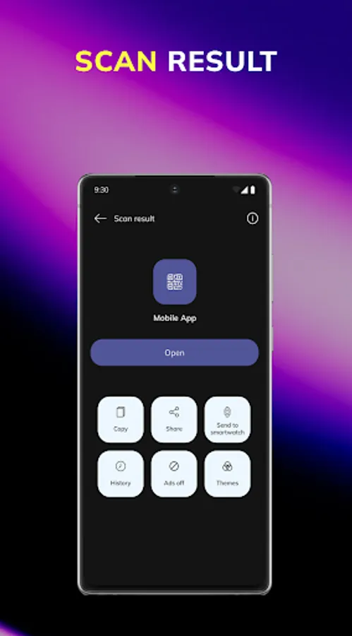 You have access to share your received data from the codes as well. It may be previously saved information from scan history, a brand new formed code, or freshly scanned code. You can share with your friends or colleagues via different social media, messengers, email, etc.
