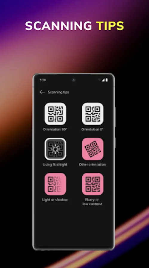 Bad lighting won't bother you anymore, because the app can scan even at night time. The app has a terrific ability to indicate data in high resolution of a camera, even if there is darkened code. The QR scanner has the skill to scan data even from photos.