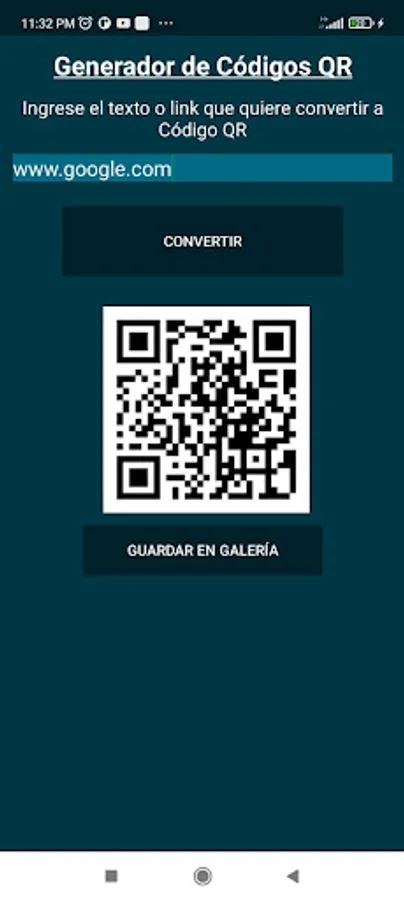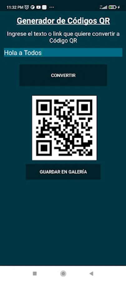 It is a simple QR generator for you to use as you prefer, you have the option to save the QR in your gallery to share it or use it for what suits you best.
