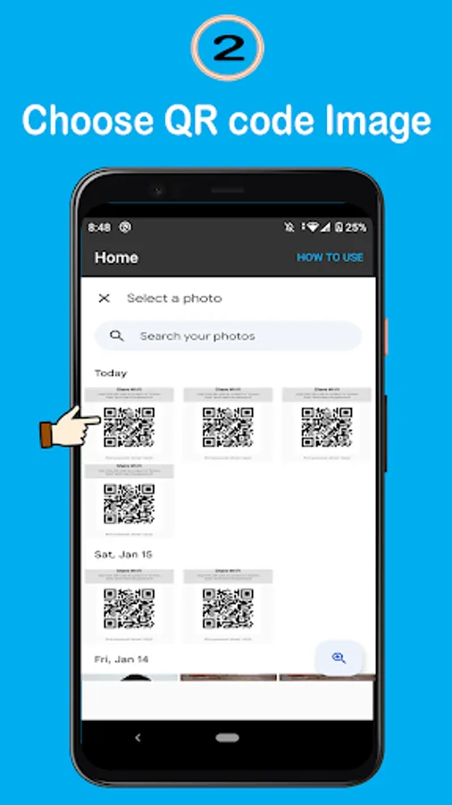 3. Or another way, go to the list of networks, click on the network you are connected to, a QR code will appear. Take a screenshot and go to the application, click on the option, choose QR code, and choose the screenshot from the gallery. The password will appear directly.