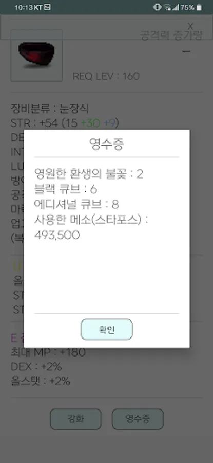 4. If you touch the receipt of the equipment information, you can see the details of the items used so far.