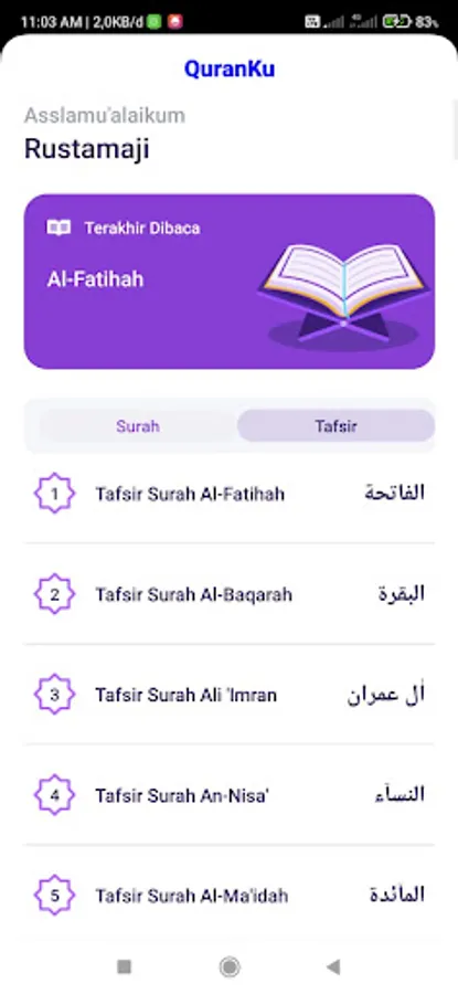 This Koran application is to make it easier for you to study the Koran which is complete with audio translation and commentary and this application uses the endpoint from EQuran.id which is the main source of the data contained in this Al-Quran API is the Koran application from the Ministry of Religion of the Republic of Indonesia, murottal audio from Quran Central and Verse By Verse Quran. Hopefully this application can be utilized as well as possible as well as possible.