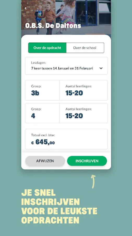 As a self-employed teacher you receive assignments from schools via MijnQrabbl. Indicate your preference and determine where, when and for whom you work. For a rate that makes you happy. You can respond to an assignment at the touch of a button and you will receive a confirmation when you are selected by the client.