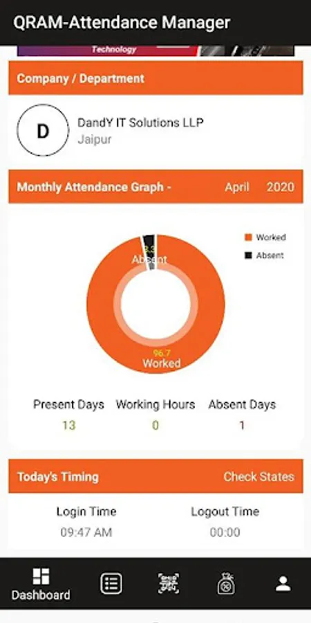 At QRAM, we offer one-time integrated solution for maintaining company's staff working details which includes management of attendance, salary, active hours of working & much more. On the other hand, an employee can keep an online record of the data - anytime, anywhere 24/7 by swiping through our mobile application, QRAM - Attendance Manager while obtaining LOGIN ID & PASSWORD as shared by the working company.
