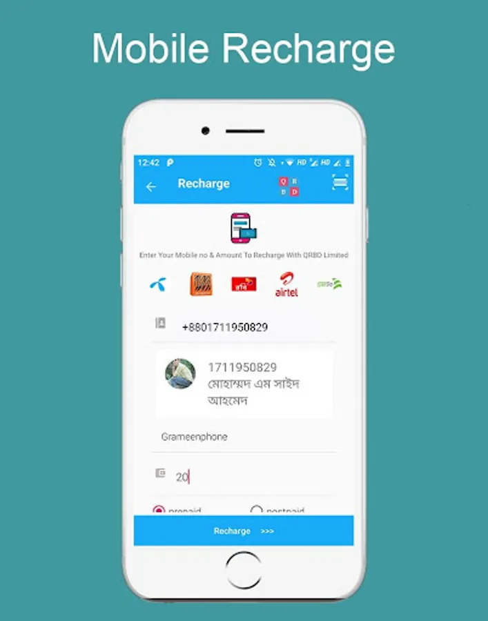 QRBD is a telecommunication-based company that uses QR code as ID. With our help you can recharge your mobile, pay internet and dish bill, mainly you can manage school or madrasa with our help