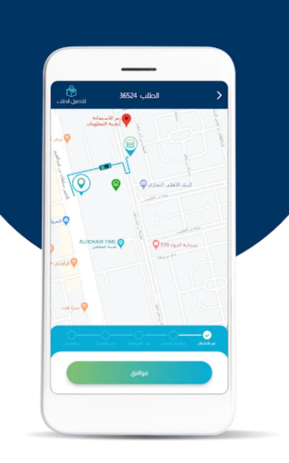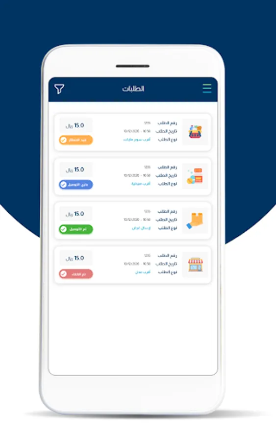 A mobile application to provide delivery service in an easy and fast way, where the customer can register with the application and browse the various categories of stores and determine his requests and then send the request and then follow up on the request, where the delivery agents in the system receive the request and one representative approves the request to start the journey of delivering the request from the store or store To the customer's site, the customer pays the value of the order in addition to the value of the delivery amount. The value of the commission on the delegates is calculated on the delivery amount, which is paid to the application management.
