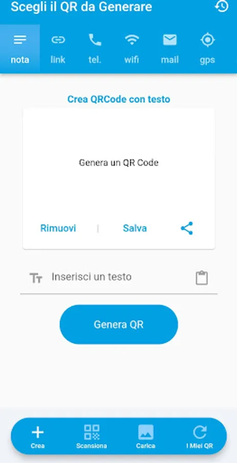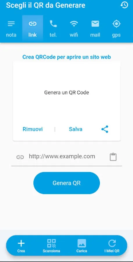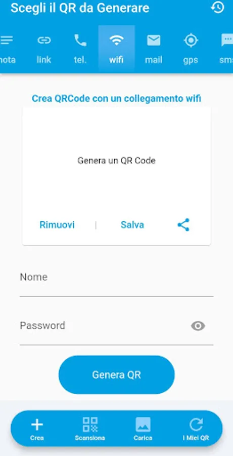 You can also generate all the QRCodes you want, these will be automatically saved on your device, without the need for registration or password.