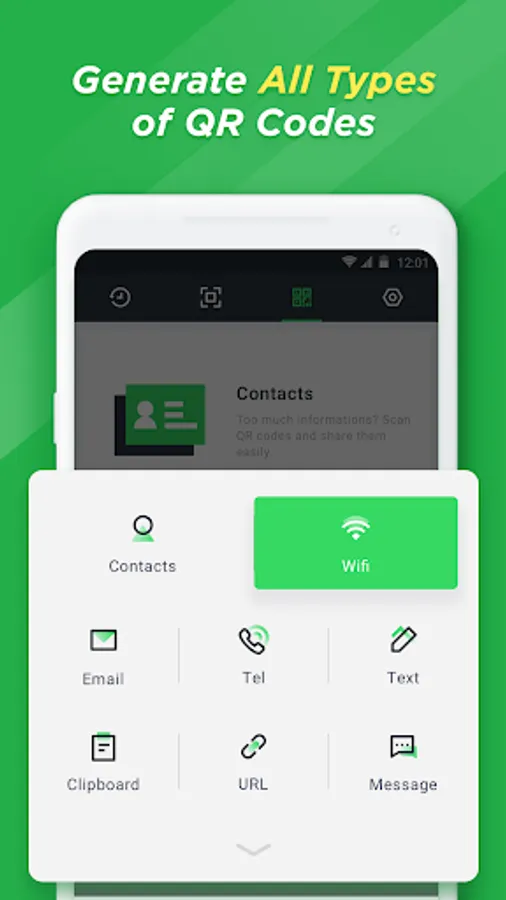 You can create different QR Codes and use the created QR Codes to be more secure. You can create clipboards, URL, WiFi, text, phone calls, emails, text messages, etc. and create QR Codes.