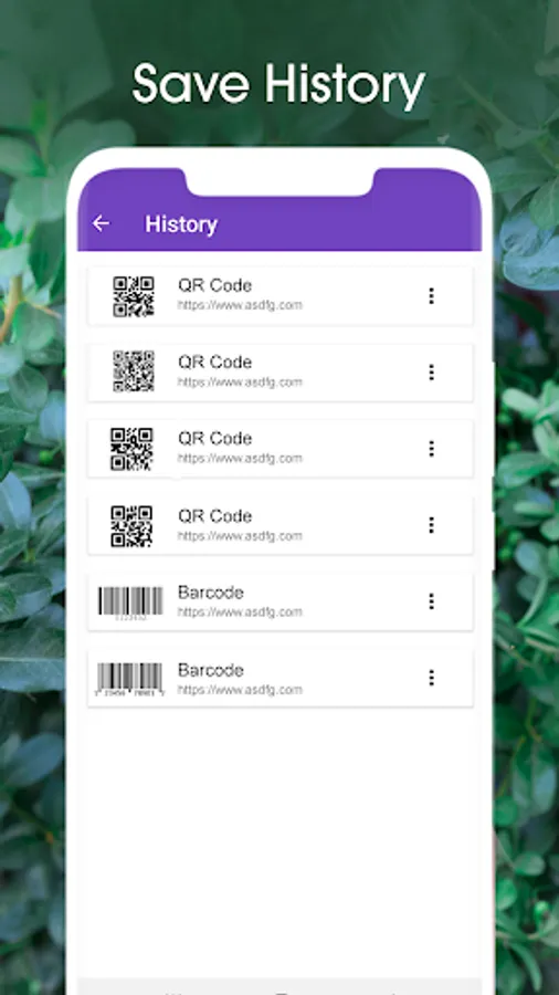• History available for all QR codes which will scan through this app.
