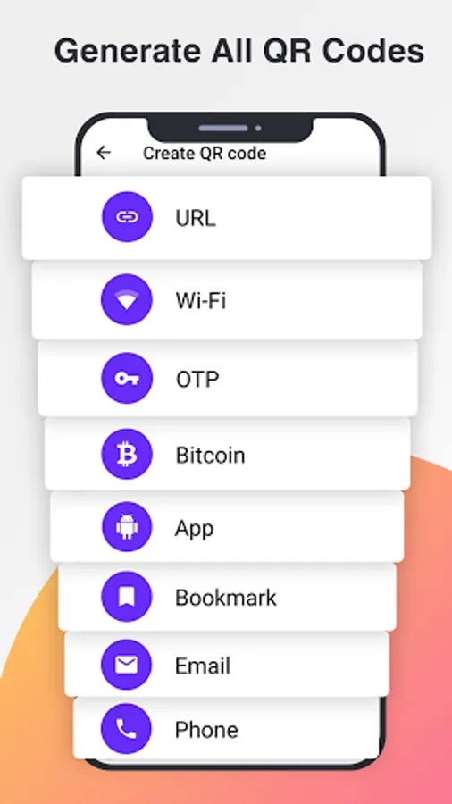 Use can easily use this app open app create your code. You can create new QR code and barcode for your text, URL, WIFI, Location, OTP, Contact (V card), Event, Phone, Email, SMS, MMS, Bitcoin, Bookmark, and your App that you want to send to your friends or relatives, other peoples, geolocation for directions your map where you want to go and share it with everyone person.