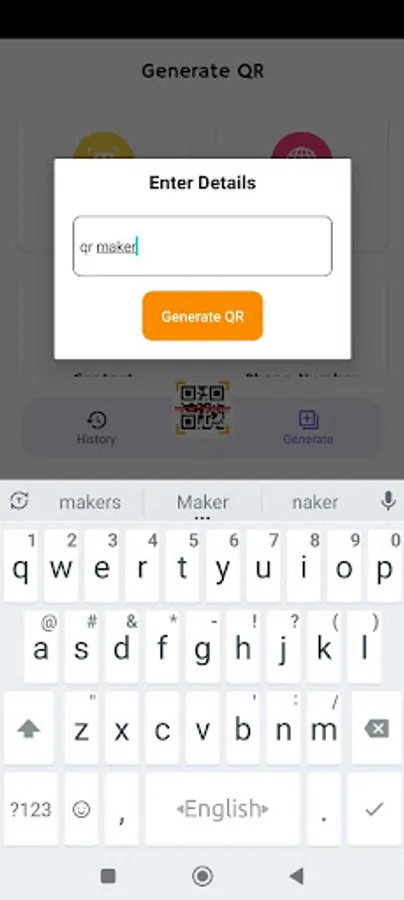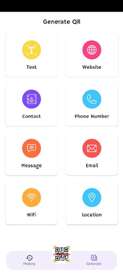 Also if you want to generate any Qr code like phone number, text message, only plain text, wifi connecting qr, link qr, etc almost every kind of QR code can be generated by this Qr Scanner 🔍App.