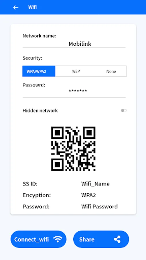 ♦ Scan result after wifi scan QR code or QR scan from picture