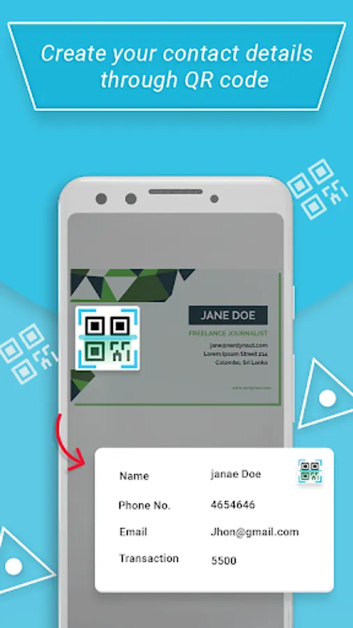 QR code scanner, barcode scanner app is also QR code generator in your pocket. Using QR generator is easy , simply enter the data you wish on QR code and click to generate QR codes. Now you can create QR codes of your social network profiles or your business contact details and share QR code with anyone.