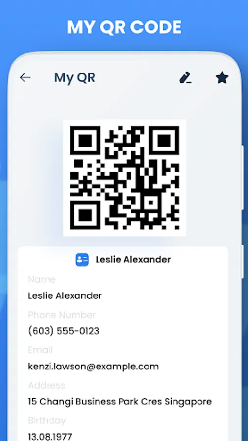 You're looking for 🔍 an application that can scan QR codes or Barcodes. You want to create a QR code for your personal information.