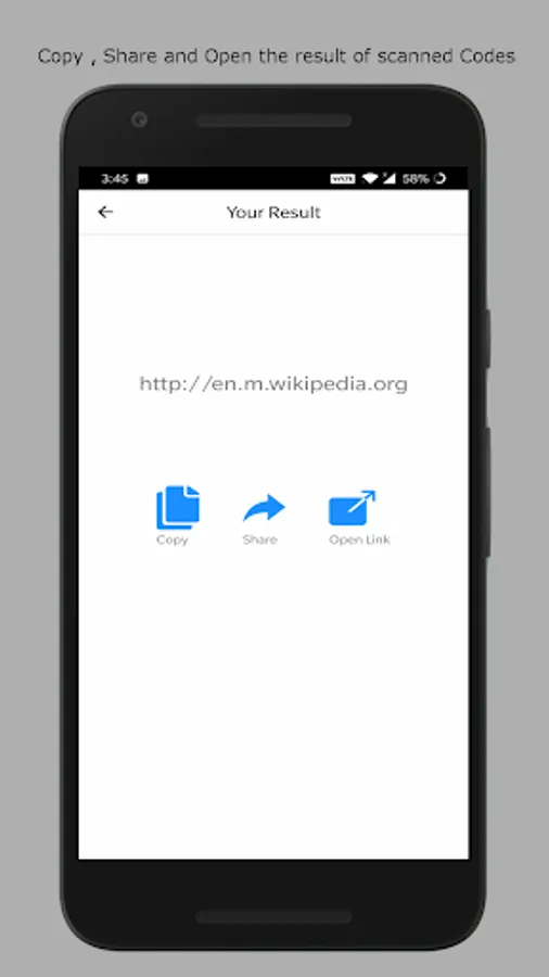 •It will give you option to share , open and copy result of Qr Code Generated.
