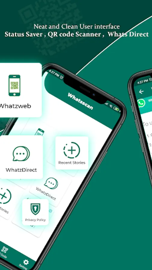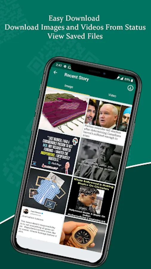 Save Recent Story or status while using this Whatscan : QR Code Scanner App, save them share them with multiple selector. Save videos as well as images.