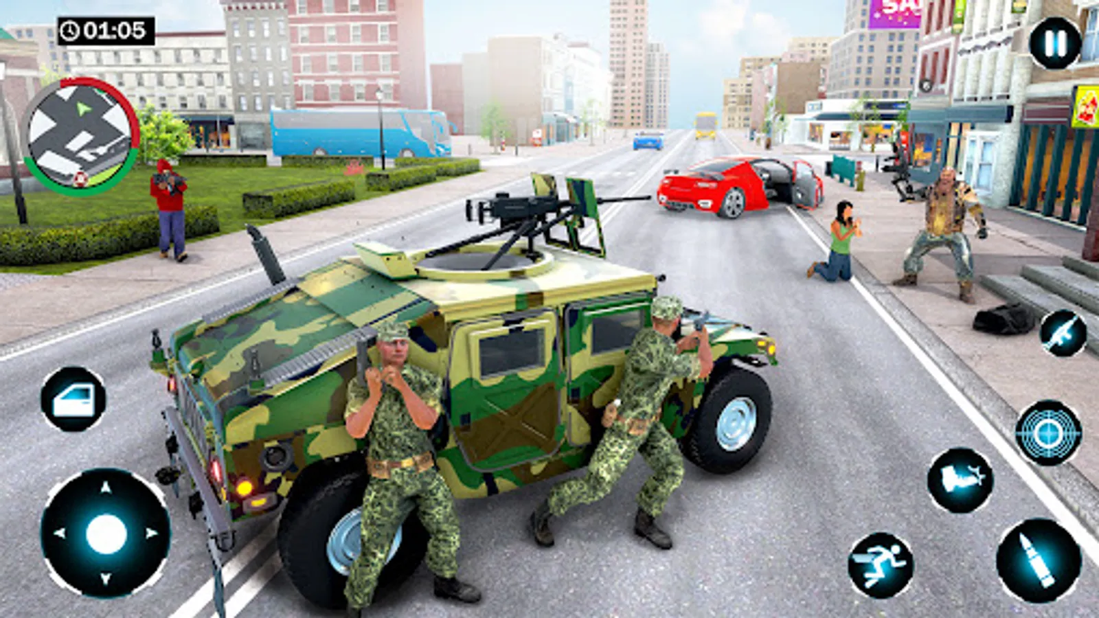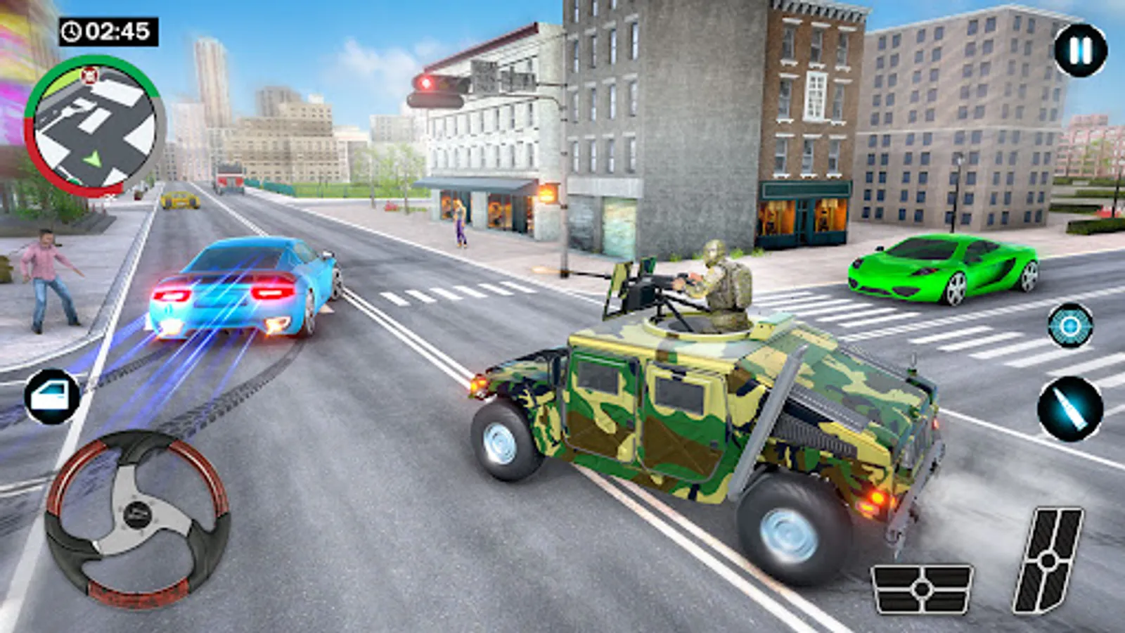 Us Army Car Driver Crime Fight is a gangster and mafia crime game with clans of criminals to hunt down and a war crime chase. Due to a large increase in criminal cases and future crime rates, and it's time for a gang showdown. This city of saints is today known as gangster city action, and it is full of insane vehicles and grand-stand exploits. To defeat mad city crime, you must confront mobster ,gangstars and put an end to the world's wildest gang. You now have control of Vice Town; keep it safe and secure.