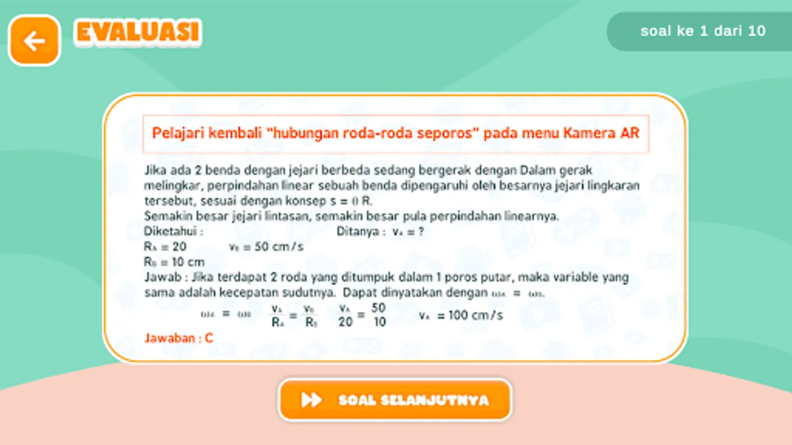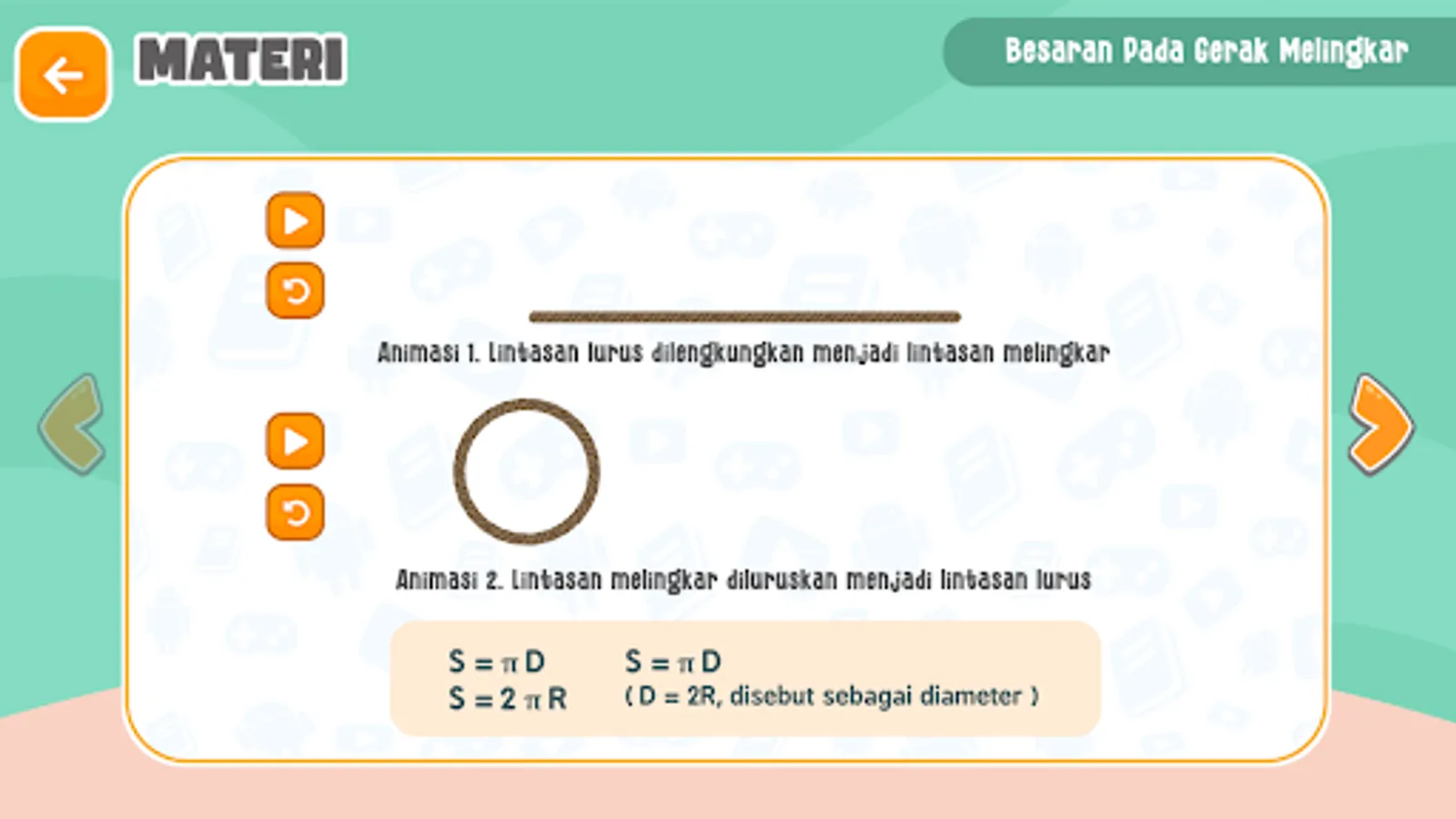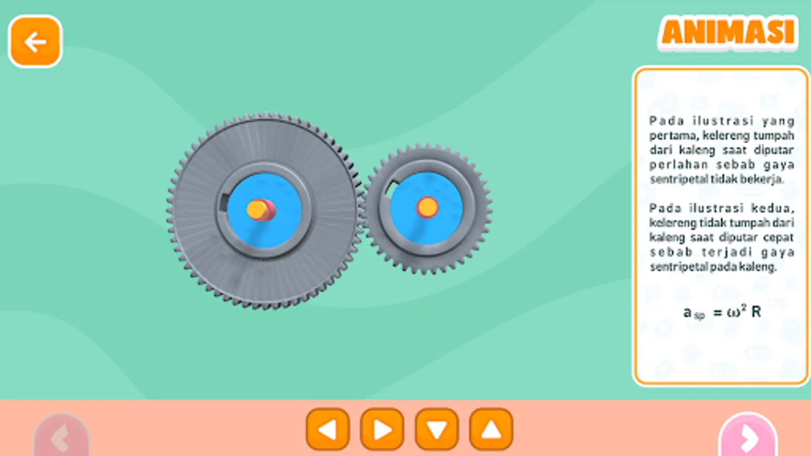 Physics - Uniform Circular Motion. This application contains material that discusses uniform circular motion, namely the magnitude of circular motion, angular displacement, angular velocity, and centripetal acceleration. Presented with an attractive 3D animation display, and there is also an evaluation menu