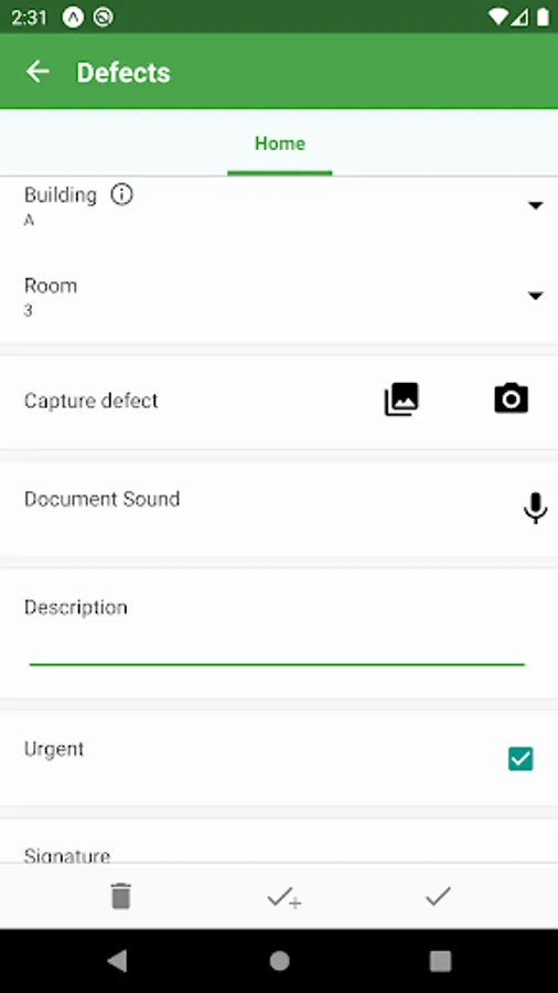 ‣ Registers photos, dictation, sounds, text, or check fields as documentation