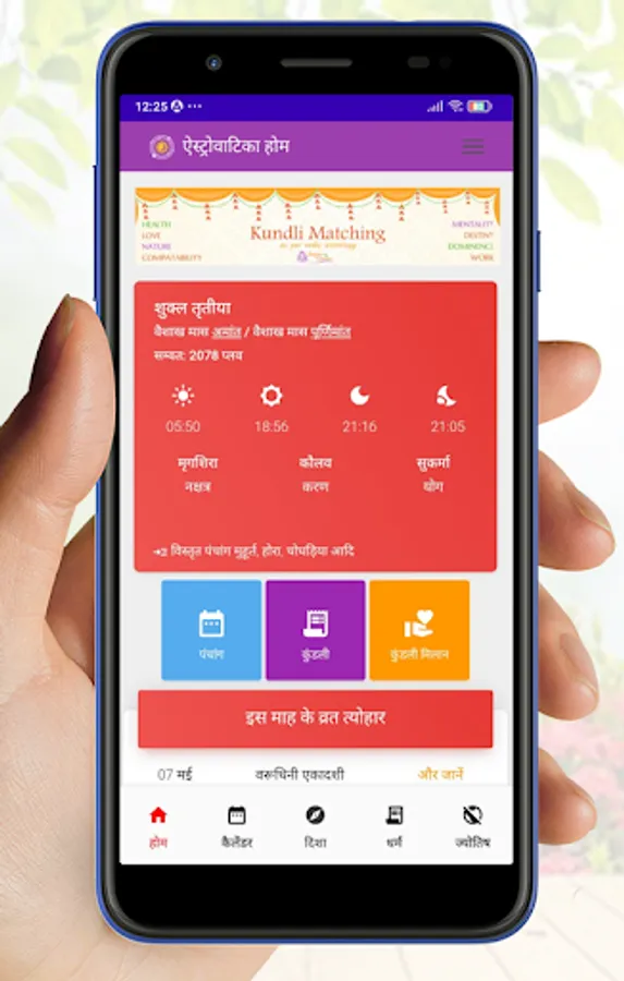 Astrovatika application is a complete app for Hindus. You will find Hindu Calendar (Panchang), Vrats, their importance and methods, festivals and their significance. App also includes compass for Vastu Dosh Nivaran. The app includes astrology features like Kundli and Kundli Milan