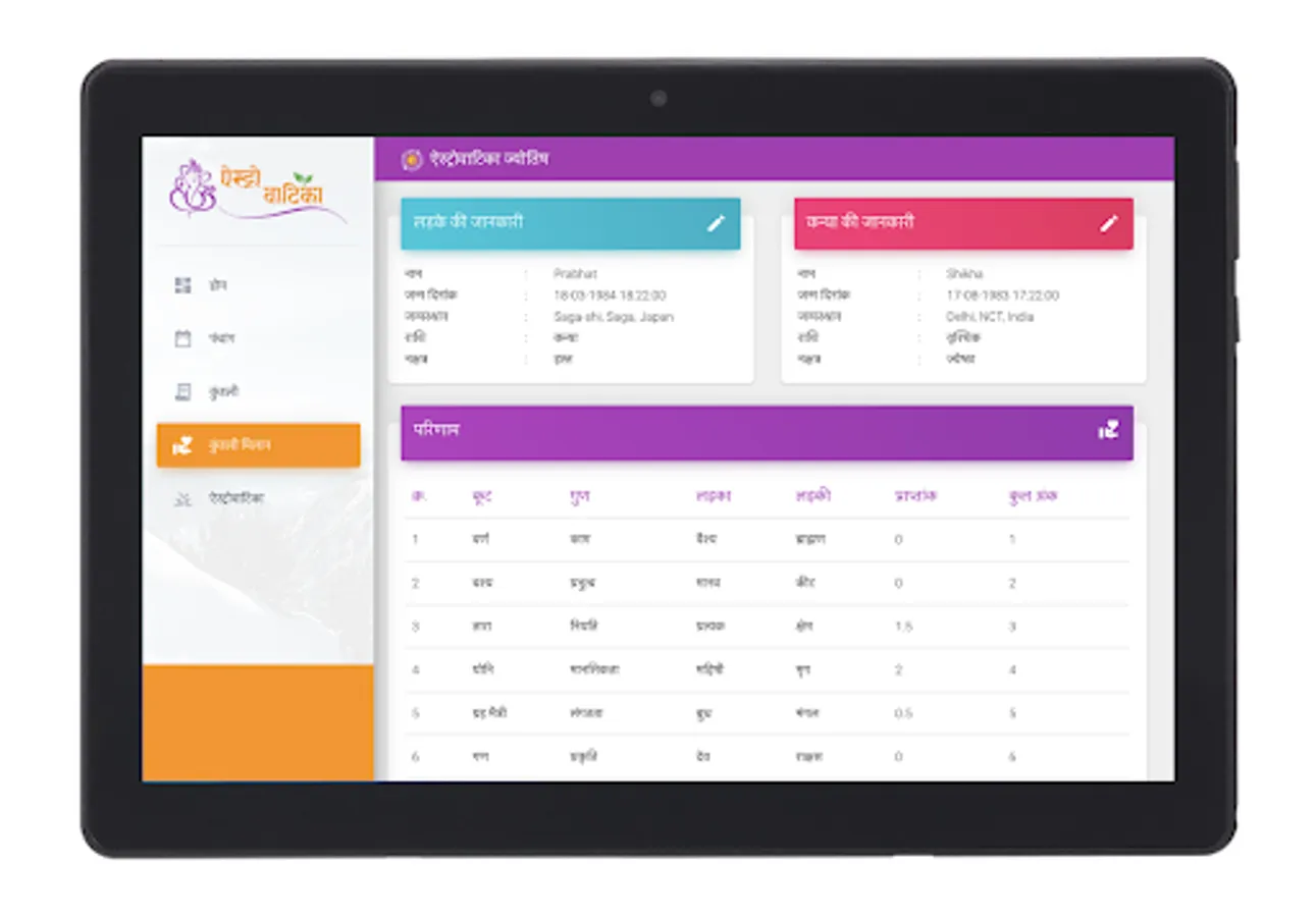 - कुंडली मिलान वैदिक ज्योतिष पर आधारित