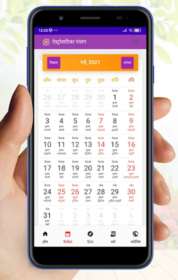 - त्योहारों के साथ हिंदू कैलेंडर: