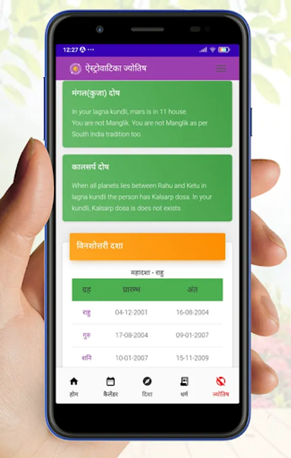 - शुरुआत और अंत टाइम्स के साथ महादशा और विंशोत्री दशा