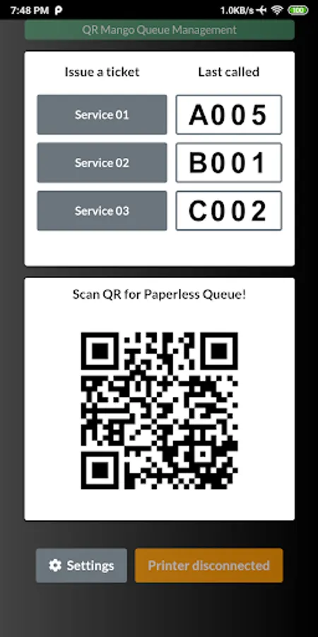 - Print queue ticket with any Bluetooth Thermal Printer.