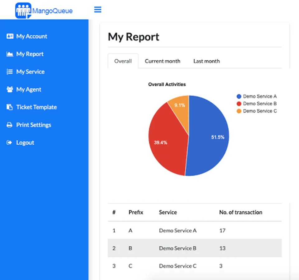 - Support multiple counters and service points.