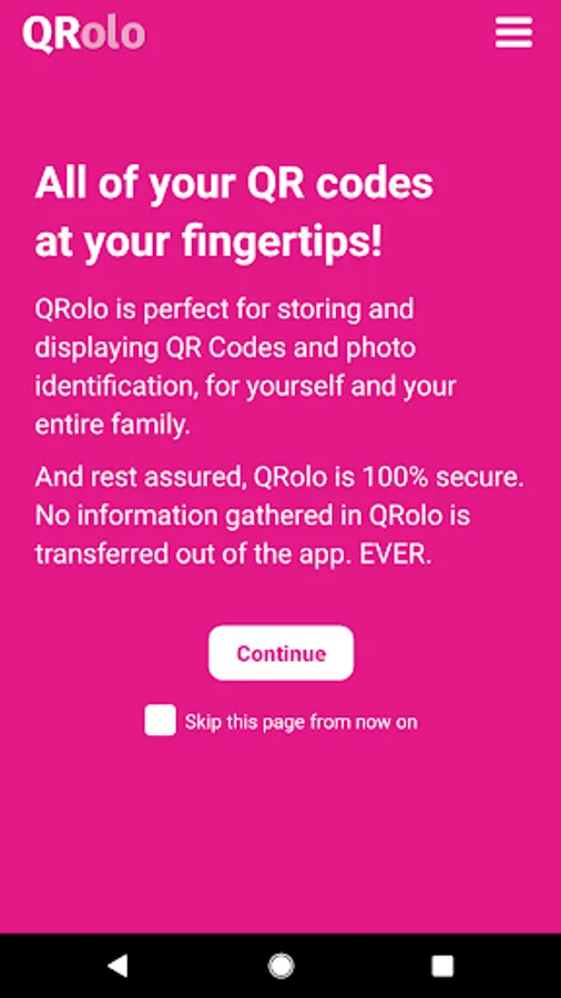 QRolo is perfect for storing and displaying your QR codes and photo ID for you and your entire family. QRolo is 100% secure. No information gathered in QRolo is EVER transferred off of your device.