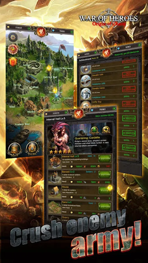 ● Discover your favorite attacking army by countless combinations of heroes, soldiers and equipments