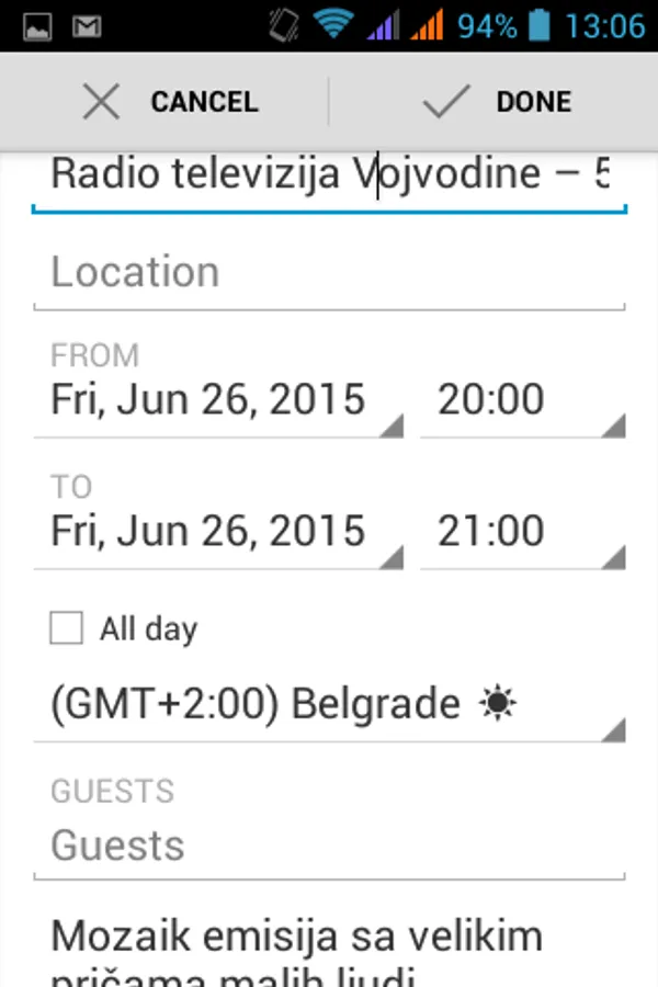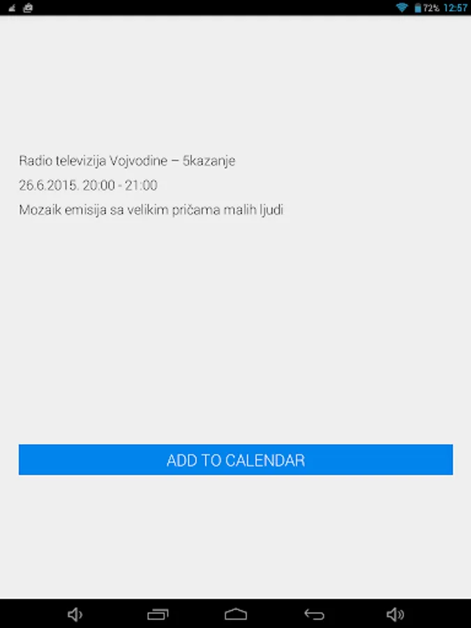 Početna funkcija jeste formiranje podsetnika u Google kalendaru, sa podatkom o nazivu emisije, programa, kratkim opisom sadržaja, vremenom početka i trajanjem emisije.